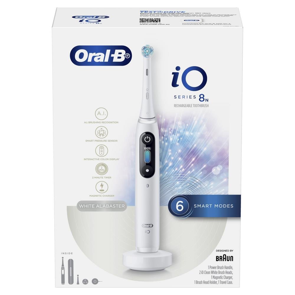 Oral-B’s best ever clean with revolutionary magnetic iO technology. The Oral-B iO Series 8 Electric Toothbrush combines powerful, but gentle micro-vibrations with Oral-B’s unique dentist-inspired round brush head design for a professional clean feeling every day.