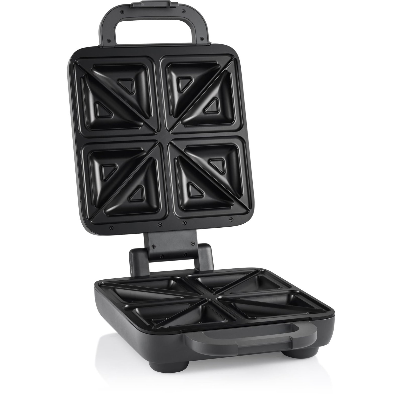 The High Hinge perfectly positions the top cooking plate to secure bread in place with no sliding, no squished filling and no mess. Makes two perfectly filled scrumptious toasties!